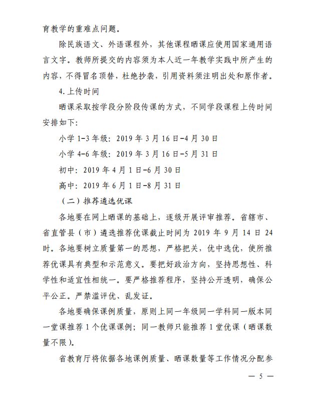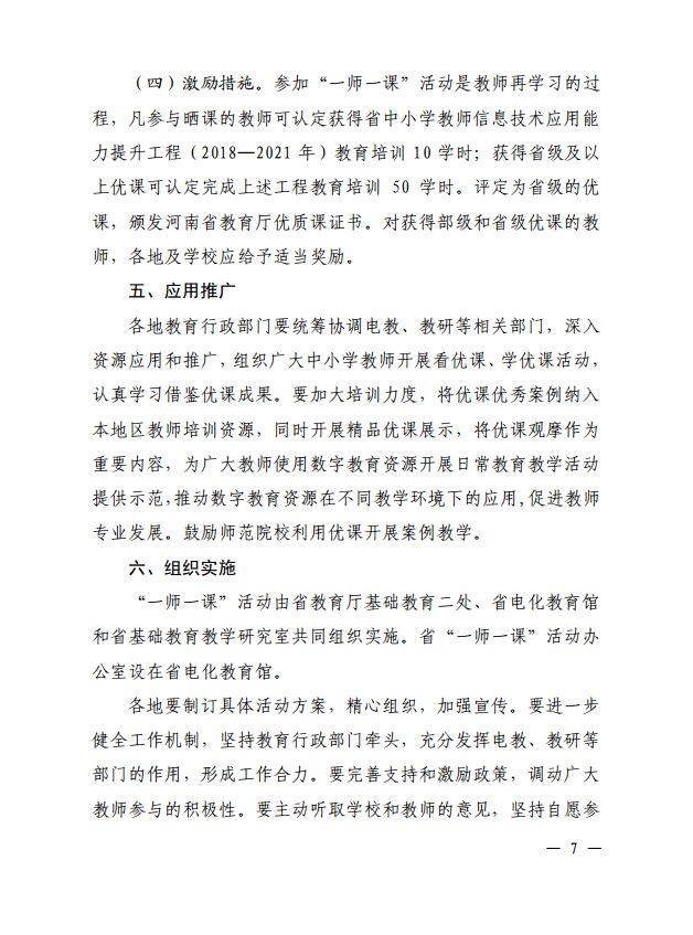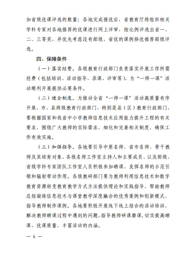 为深入贯彻全国教育大会精神,扎实推进基础教育信息化应用,根据《教育部办公厅关于开展 2019 年“一师一优课、一课一名师”活动的通知》(教基厅函〔2019〕12 号)要求,决定在全省中小学继续开展“一师一优课、一课一名师” (以下简称“一师一课”)活动。