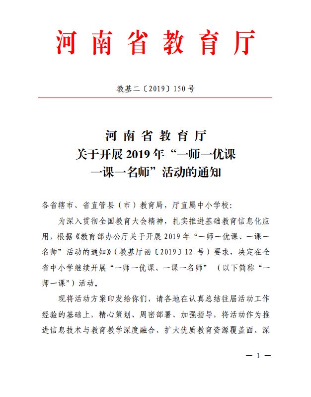 附件:1.河南省 2019 年“一师一优课、一课一名师”活动实施方案.pdf